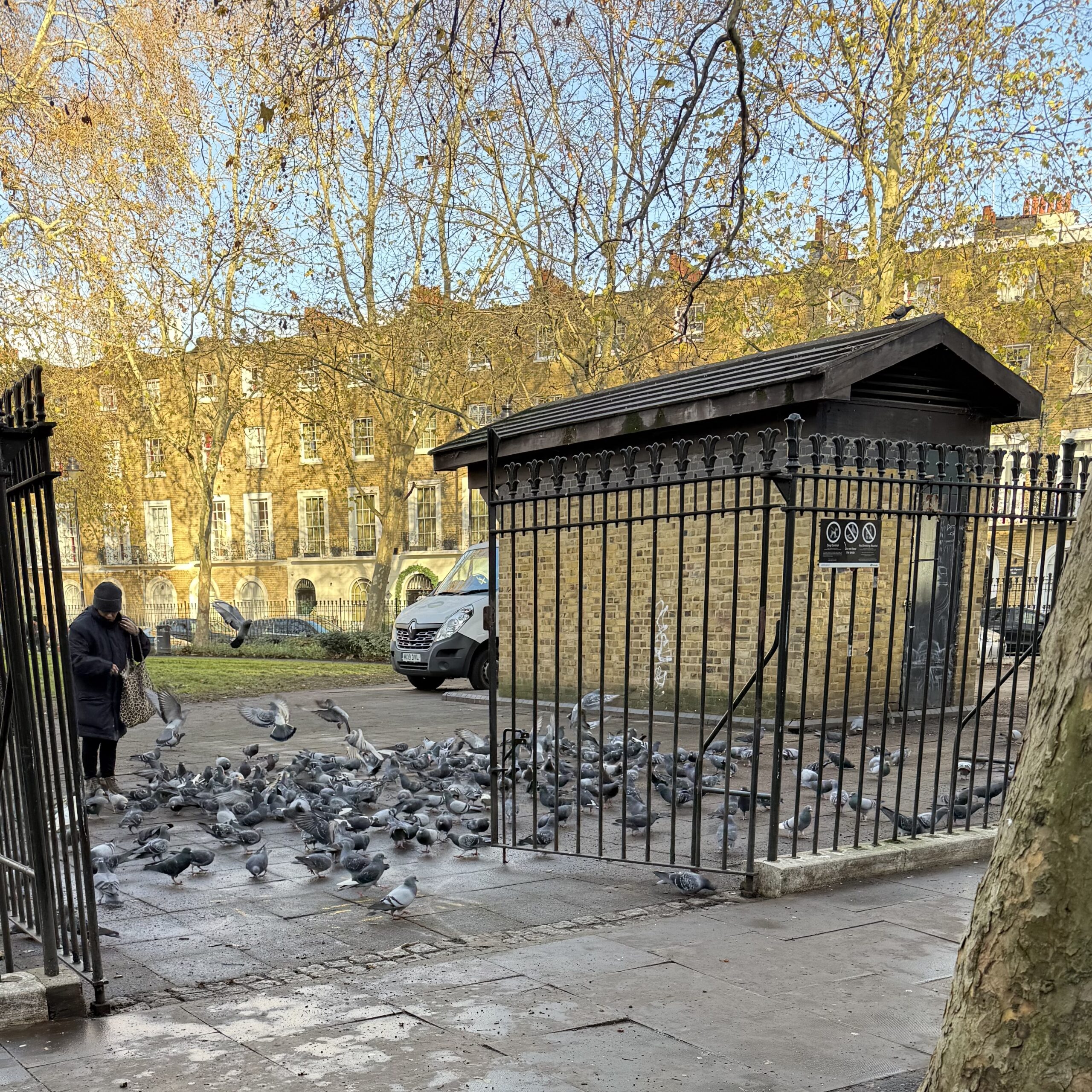 After landing in London on our red-eye from the states, we checked into our hotel and then grabbed some essential coffee near the hotel. A quick stroll through the surrounding King Cross neighborhood revieled a lot of hustle and bustle but a few quieter streets and courtyards – and a whole lot of pigeons.