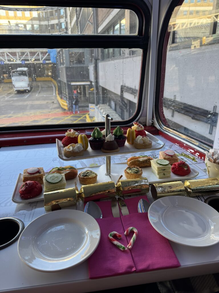 We wove through Westminster towards Victoria Coach station where we had a reservation for a 12 PM bus tour. This was a very urban part of London, characterized by quick food stops and office buildings. Finally, we reached the bus station and hopped on board a double decker bus for an afternoon tea tour with Brigit’s Bakery. You can learn more about the treats and experience onboard the B Bakery Bus Tour below!
