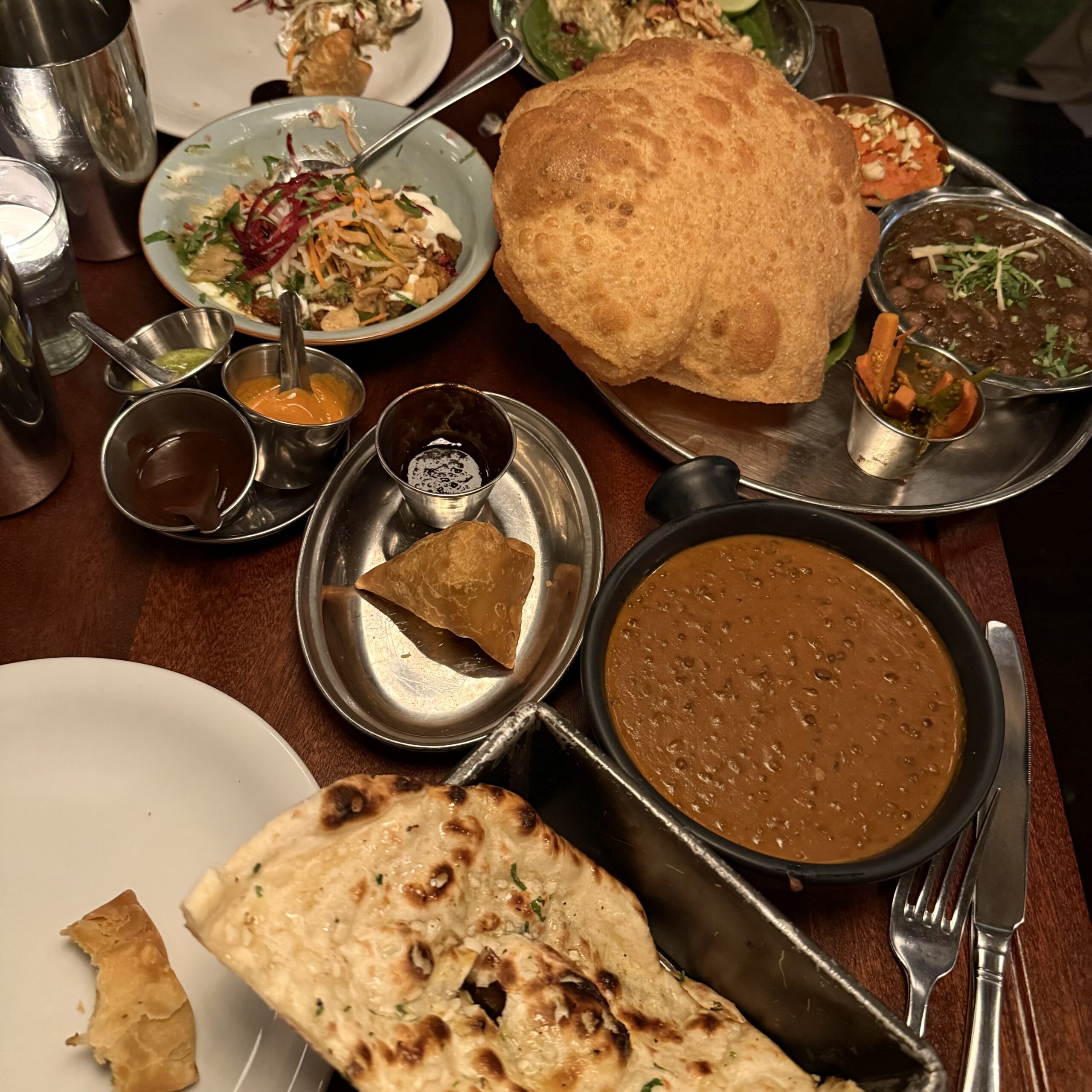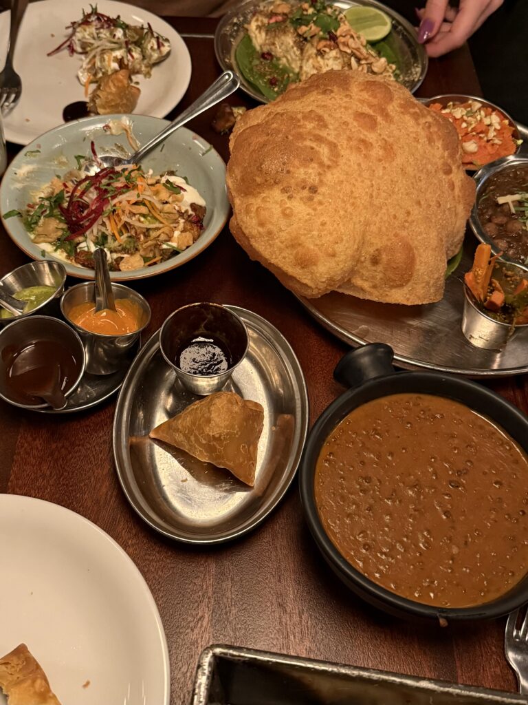 I am thoroughly convinced there isn’t a bad thing to order at Dishoom. Each item is fairy small so they recommend about 2-3 dishes per person. We said yes please and ordered Vegetable Samosas, Chole Puri Halwa, Dishoom House Chat, Mattar Paneer, House Black Daal, and Garlic Naan. I don’t think you can go wrong but please get the Black Daal! It is absolutely amazing and our favorite thing of the entire meal.